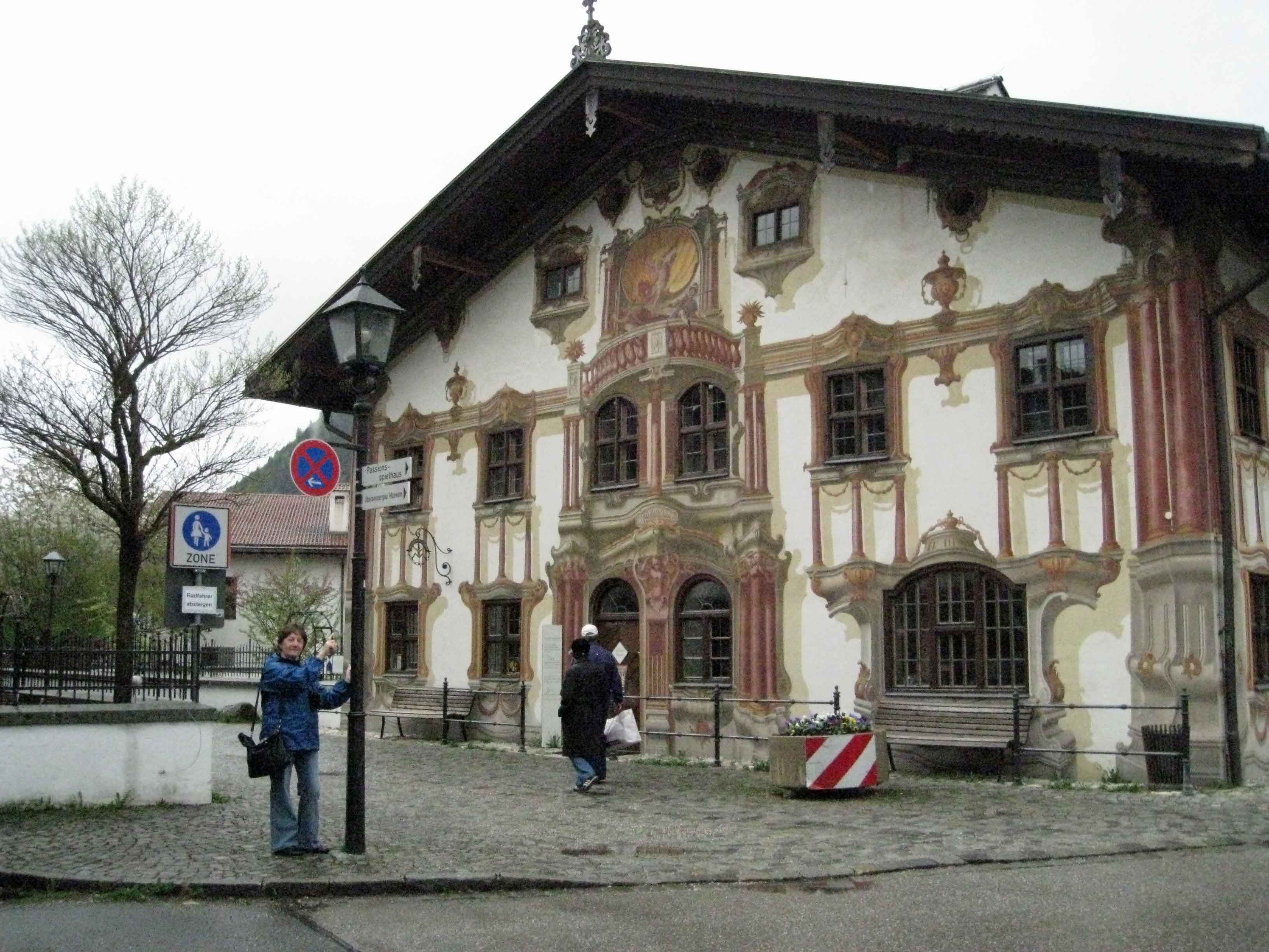 Next stop, the home of the famous Passion Plays in the village of Oberammergau. The weather improved slightly, fog lifted and the rain cleared. We had a brief look inside the theatre where the Passion Play is held every ten years (the last in 2010). Renovations being carried out so we didn’t stay long.